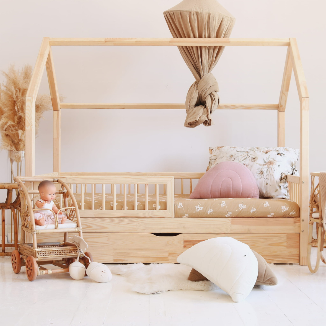 Lit cabane Montessori avec barrière Matteo 90x190cm