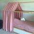 Nous avons donc conçu le ciel de lit cabane avec des lacets à nouer à la barre supérieure du lit cabane de votre enfant afin qu'il soit bien attaché et ne glisse pas pendant la nuit ou lors des après-midi de jeux avec les copains!