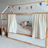 Chaque ciel de lit cabane et rideaux pour le lit Kura de notre collection est confectionné avec passion et dévouement dans un atelier singulier du plat pays.