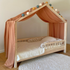 Nous avons donc conçu le ciel de lit cabane avec des lacets à nouer à la barre supérieure du lit cabane de votre enfant afin qu'il soit bien attaché et ne glisse pas pendant la nuit ou lors des après-midi de jeux avec les copains!