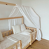 Nous avons donc conçu le ciel de lit cabane avec des lacets à nouer à la barre supérieure du lit cabane de votre enfant afin qu'il soit bien attaché et ne glisse pas pendant la nuit ou lors des après-midi de jeux avec les copains!