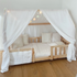 Nous avons donc conçu le ciel de lit cabane avec des lacets à nouer à la barre supérieure du lit cabane de votre enfant afin qu'il soit bien attaché et ne glisse pas pendant la nuit ou lors des après-midi de jeux avec les copains!