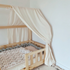 Nous avons donc conçu le ciel de lit cabane avec des lacets à nouer à la barre supérieure du lit cabane de votre enfant afin qu'il soit bien attaché et ne glisse pas pendant la nuit ou lors des après-midi de jeux avec les copains!