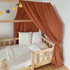 Notre ciel de lit est fabriqué en mousseline de coton double gaze, un tissu doux et léger qui crée une ambiance poétique dans la chambre de votre enfant.