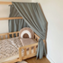 Nous avons donc conçu le ciel de lit cabane avec des lacets à nouer à la barre supérieure du lit cabane de votre enfant afin qu'il soit bien attaché et ne glisse pas pendant la nuit ou lors des après-midi de jeux avec les copains!