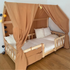 Nous avons donc conçu le ciel de lit cabane avec des lacets à nouer à la barre supérieure du lit cabane de votre enfant afin qu'il soit bien attaché et ne glisse pas pendant la nuit ou lors des après-midi de jeux avec les copains!