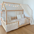 Pack lit cabane + ciel de lit + guirlande + range-doudou