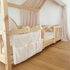 Nous avons donc conçu le ciel de lit cabane avec des lacets à nouer à la barre supérieure du lit cabane de votre enfant afin qu'il soit bien attaché et ne glisse pas pendant la nuit ou lors des après-midi de jeux avec les copains!