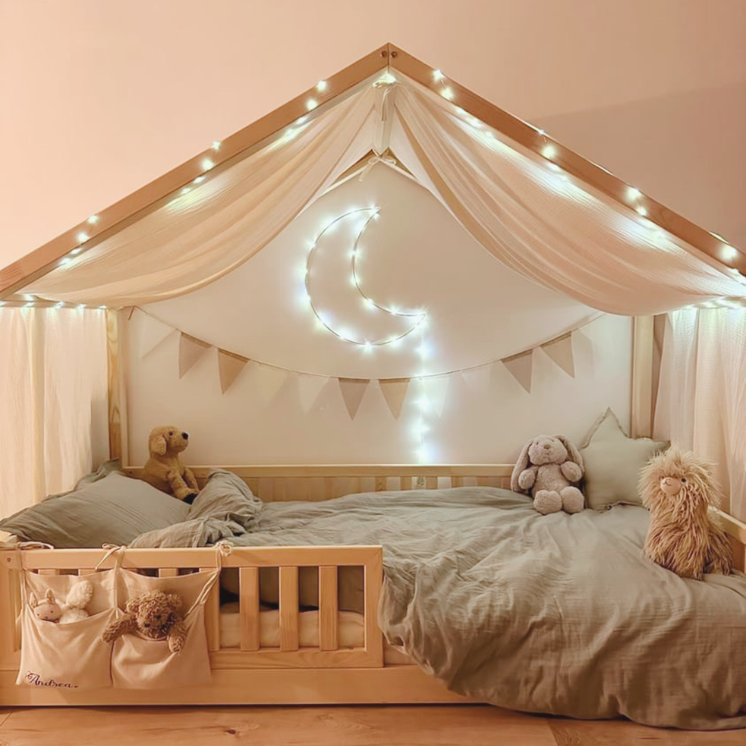 Chaque lit cabane de la collection que je propose est le fruit d'une sélection minutieuse, faite avec tout le soin et la délicatesse de mon cœur de maman ♡Je suis constamment à la recherche du parfait équilibre entre sécurité, robustesse et magie pour nos enfants. Afin de garantir un niveau de qualité et une rapidité dans la livraison, j'ai décidé de faire confiance à un fabricant allemand, réputé pour son expertise et la durabilité de ses produits. J'ai choisi pour vous le meilleur rapport qualité-prix du marché, afin que votre enfant bénéficie d'un joli lit cabane, sans faire de compromis sur la qualité.