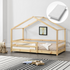Lit cabane avec barrière et matelas - 90x200cm - Bois naturel