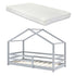 Lit cabane avec barrière et matelas - 90x200cm - Gris