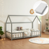 Lit cabane avec barrière + matelas - 90x200cm - Gris & blanc