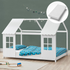 Grand lit cabane double avec matelas - 140x200cm - Blanc