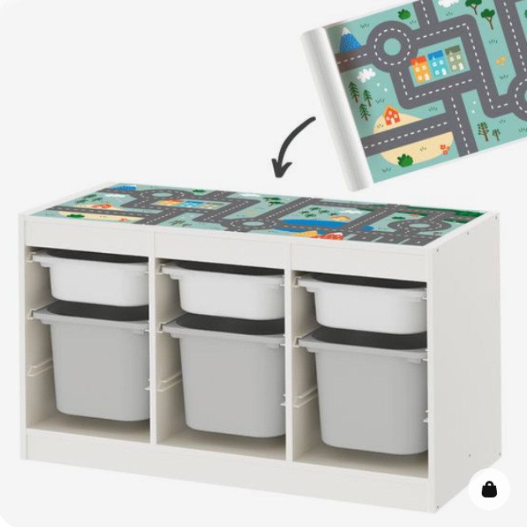 Ajoutez un couvercle sur votre bac Trofast pour développer la motricité fine de votre enfant et recouvrir les bacs!