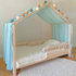Nous avons donc conçu le ciel de lit cabane avec des lacets à nouer à la barre supérieure du lit cabane de votre enfant afin qu'il soit bien attaché et ne glisse pas pendant la nuit ou lors des après-midi de jeux avec les copains!