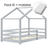 Hutbed met slagboom en matras - 80x160cm - Grijs